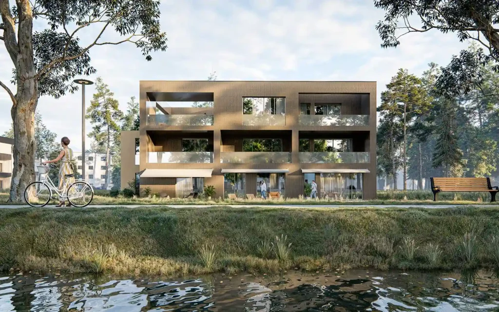Ana Podobnik (UI): Arhitektonsko oblikovanje definirano je urbanističkim i konzervatorskim smjernicama, izduženom formom čestice i njezinom orijentacijom. Istovremeno, inspiraciju smo pronašli u prirodnim vrijednostima lokacije – šetnici uz potok Gradnu, blizini gradskog središta i vizurama na Stari grad. Rezultat je razvedeni volumen s naglašenim pročeljem prema šetnici. Stambene jedinice usmjerene su prema gradu i jugu, dok su sporedni sadržaji, poput ulaza u podzemnu garažu i komunikacijskih prostora, smješteni na sjevernoj strani. Svaki stan, bez obzira na veličinu, ima osiguran kvalitetan vanjski prostor.
